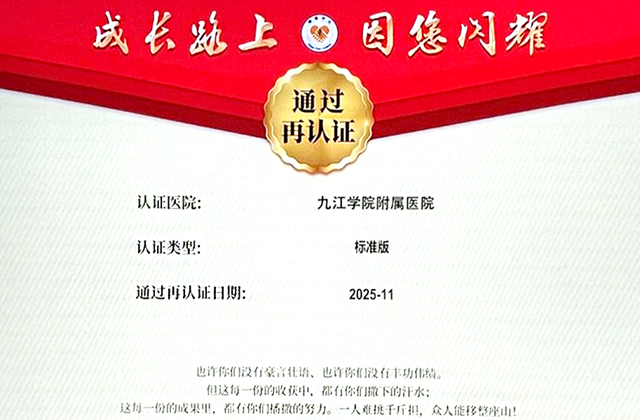 作为经国家发改委批准立项,江西省首批省级区域医疗中心中唯一服务于赣北地区的单位,我院始终坚持优化胸痛中心救治流程,完善院前院内衔接机制,强化多学科协作模式,深化信息化支持手段,为急性胸痛患者构建了高效、顺畅的生命救治通道,是九江及周边地区群众心脏健康的重要保障。此次通过国家再认证,是对我院胸痛中心过去一个认证周期内持续努力与卓越成效的肯定。