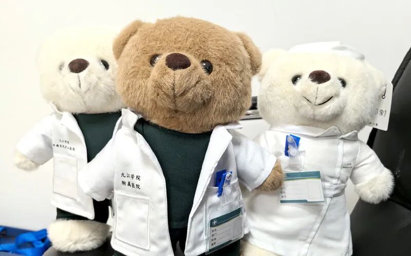 一通电话从庐山人民医院打给九江学院附属医院耳鼻喉科主任付书彩,“您有一个浙江来的包裹在庐山,要不要我带下山去!”“我怎么可能有邮件地址会写到庐山上呢!”反复确认之下还是很疑惑。直到拿到包裹:里面有一封手写信、三只穿着定制九江学院附属医院白大褂的小熊玩偶、一幅定制的相框毛笔字。一头雾水的付书彩一边认真地阅读着信件,一边仔细回忆着。“想了好久才想起来是一年前的一位患者。”付书彩笑着说:“很意外,千里之外的病人因为旅游时的这个小插曲,竟然找了我一年多!”