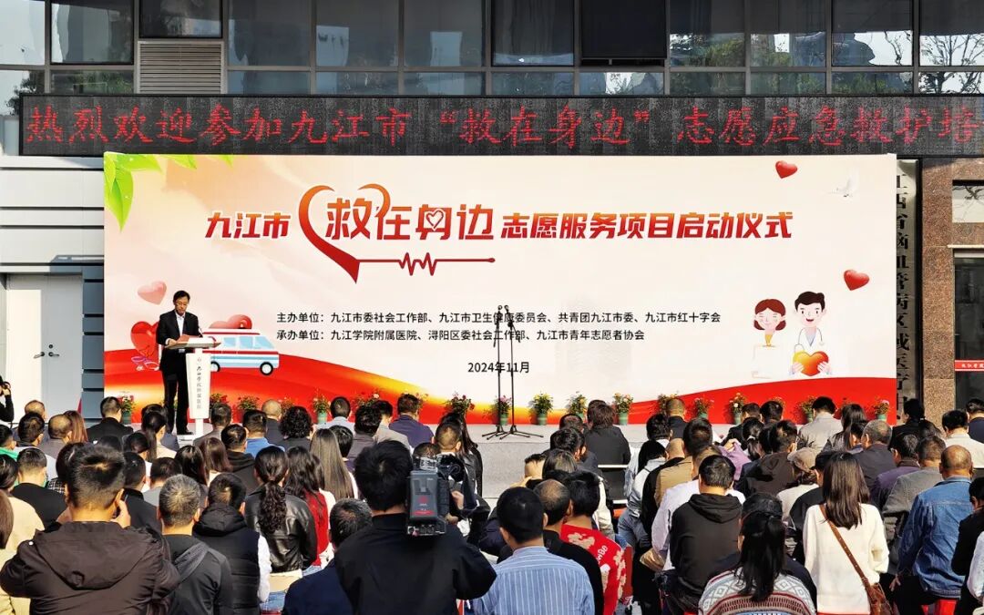 为构建以“政府主导、附院承办、各方协同、社会参与”的全覆盖社会急救体系,2024年11月起,医院启动了“救在身边”志愿服务项目,联合九江市红十字会等部门一同组建宣讲团,遴选市民群众和社会志愿者进行授课。