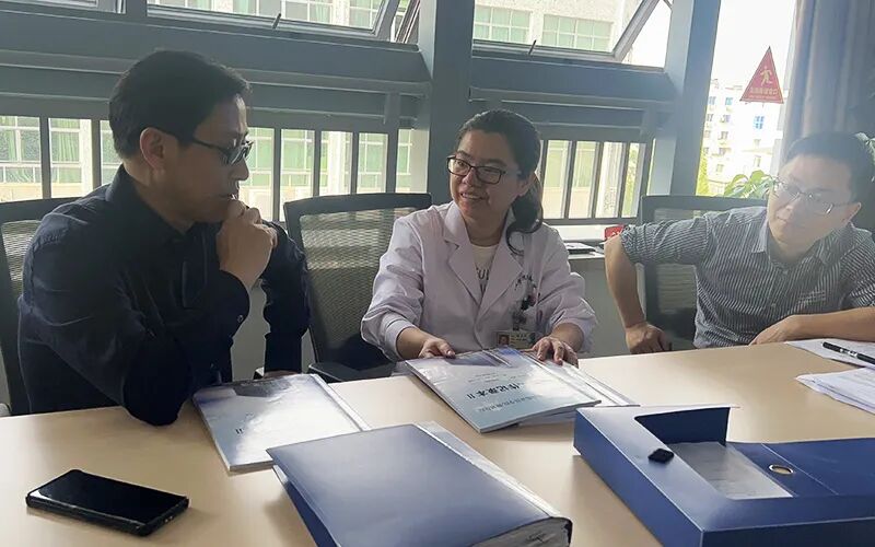 谷翔院长听取了教务科科长陈志颖关于医院实践教学工作的整体汇报,深入临床科室实地查看了实习生的轮转计划、教学查房记录、出科考核档案等材料,并与带教老师和实习学生进行了交流。