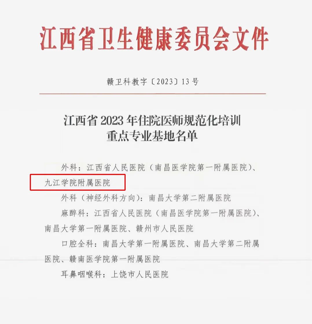 【科教科/文 普外科/摄】近日,江西省卫生健康委确定了江西省2023年住院医师规范化培训重点专业基地名单。按照《江西省卫生健康委江西省财政厅关于印发江西省省级临床重点专科建设等项目实施方案的通知》要求,经积极申报,专家评审,层层筛选,全省共10个专业基地获批为江西省2023年住院医师规范化培训重点专业基地,外科基地仅获评2个,我院普外科基地为其中之一。